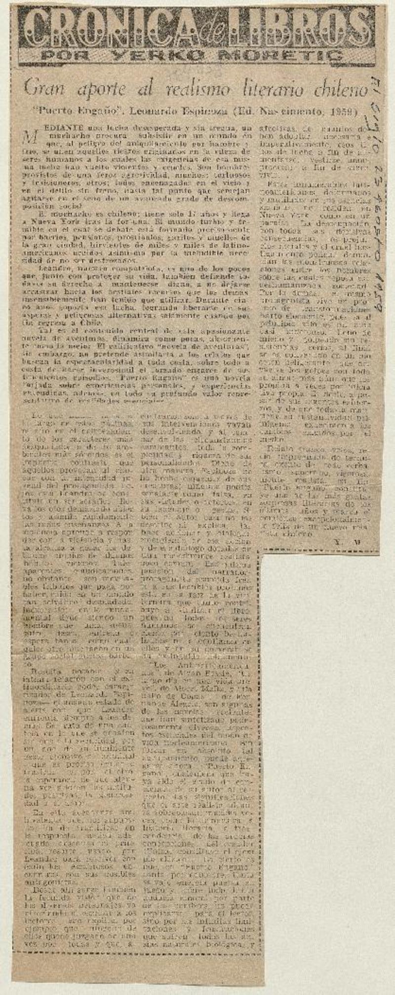 Gran aporte al realismo literario chileno [artículo] Yerko Moretic.