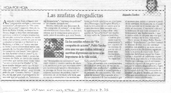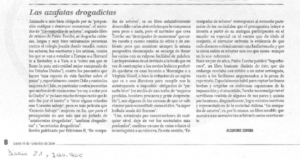 Las azafatas drogadictas [artículo] Alejandro Zambra.