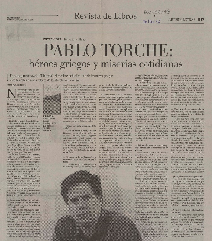 Autores chilenos - Entrevistas - Torche, Pablo - Filomela