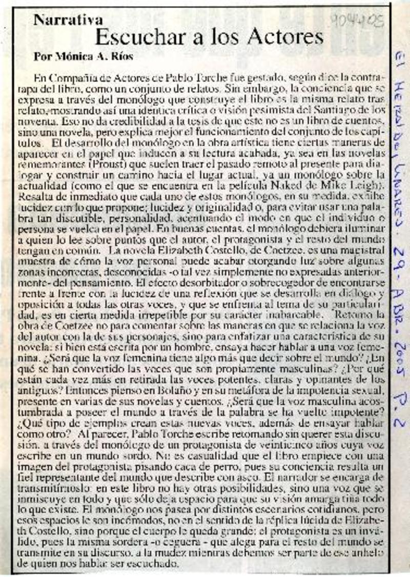 Escuchar a los actores [artículo]Mónica A. Ríos.