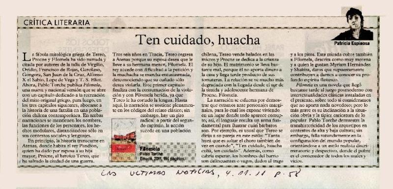 Ten cuidado, huacha [artículo] Patricia Espiniosa.