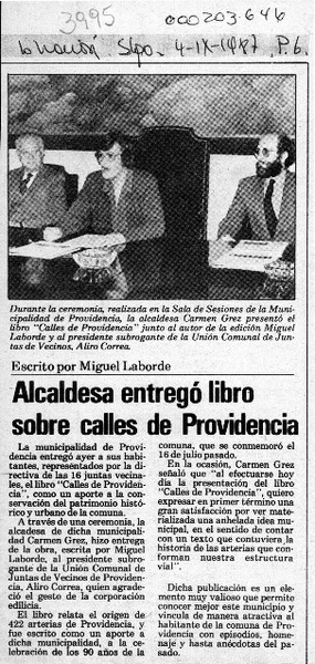 Alcaldesa entregó libro sobre calles de Providencia [artículo].