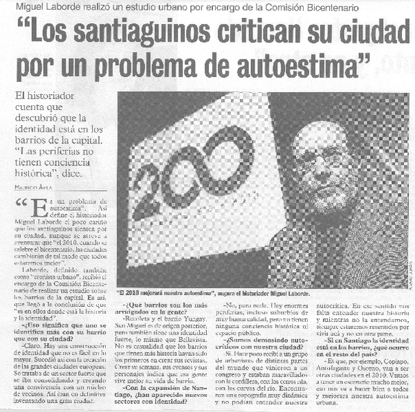 "Los santiaguinos critican su ciudad por un problema de autoestima" [artículo] Mauricio Avila