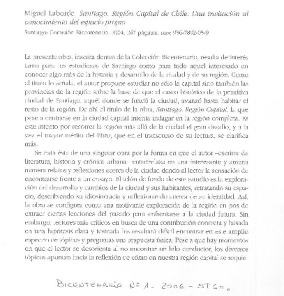 Autores chilenos - Laborde, Miguel - Región capital de Chile