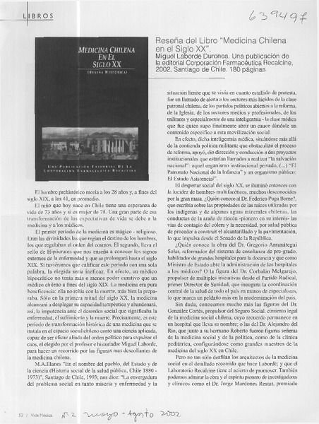 Autores chilenos - Laborde, Miguel - Medicina chilena en el siglo XX