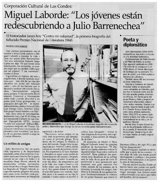 Miguel Laborde: "Los jóvenes están redescubriendo a Julio Barrenechea". [artículo]