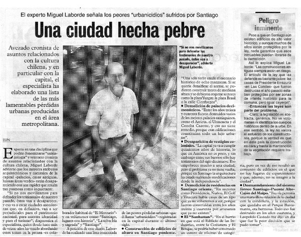 La historia de Santiago con Miguel Laborde [artículo] Cristián Warnken.