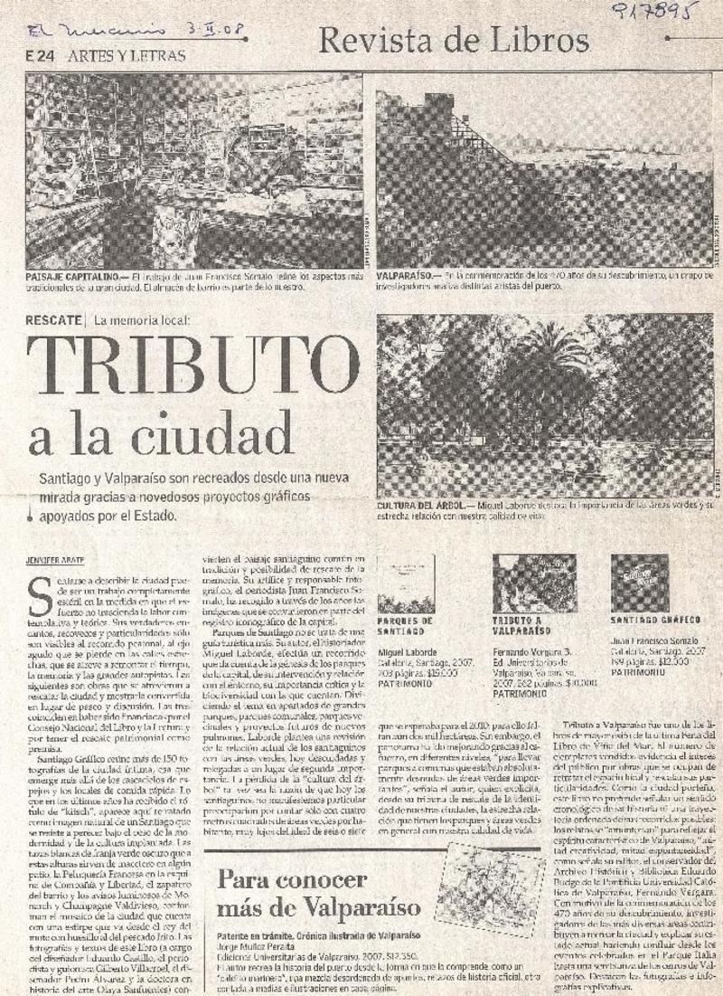 Autores chilenos - Laborde, Miguel - Parques de Santiago - Vergara B., Fernando - Tributo a Valparaíso - Somalo Valor, Juan Francisco - Santiago gráfico