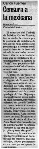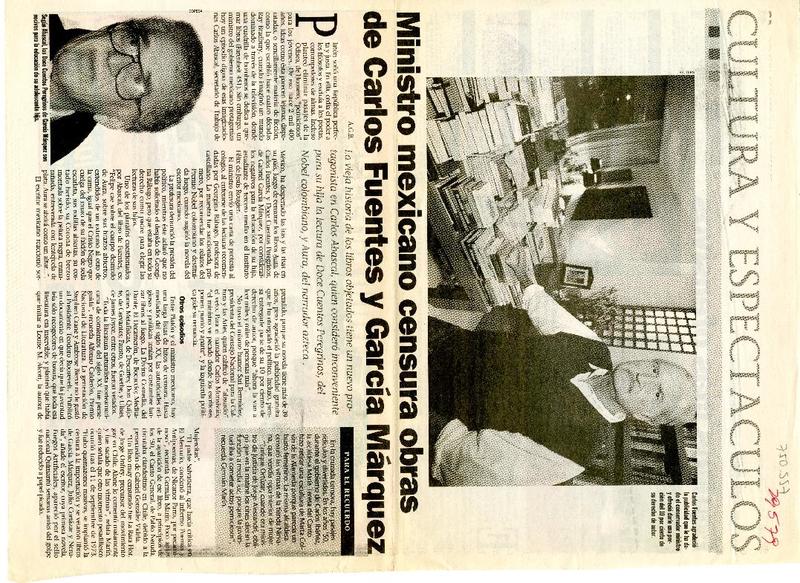Ministro mexicano censura obras de Carlos Fuentes y García Márquez [artículo] A.G.B.