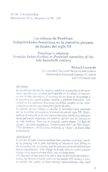 Las odiseas de Penélope [artículo] Richard Leonardo.
