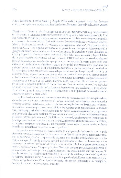 Salomone, Alicia - Pérez, Ángela - Autoras chilenas - Amaro Castro, Lorena - Caminos y desvíos