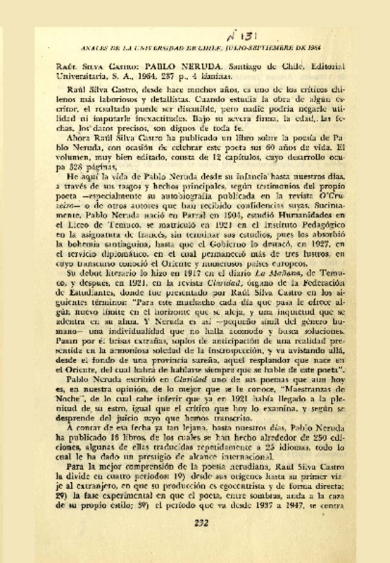 Autores chilenos - Silva Castro, Raúl - Pablo Neruda