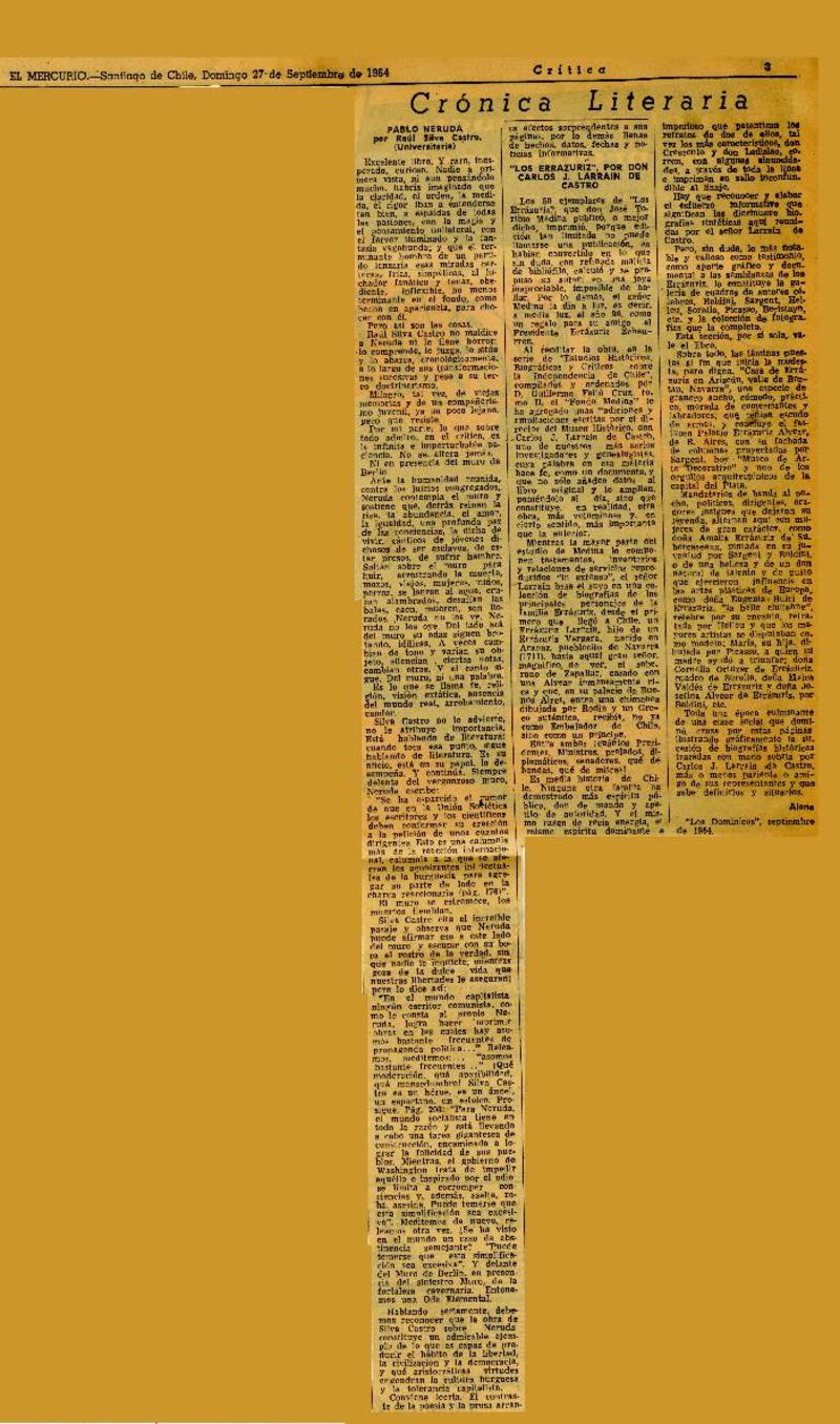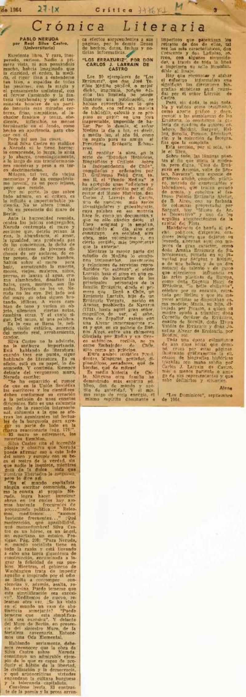 Autores chilenos - Neruda, Pablo - Larrain, Carlos J. - Pablo Neruda - Errázuriz - Silva Castro, Raul