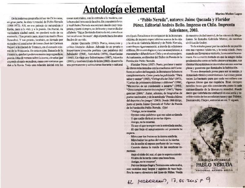 Antología elemental [artículo] Marino Muñoz Lagos.