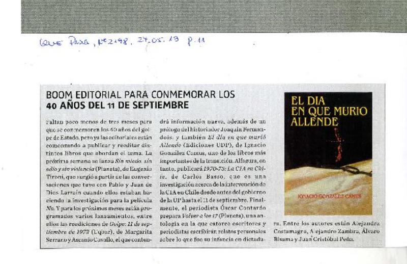 Boom editorial para conmemorar los 40 años del 11 de septiembre [artículo]