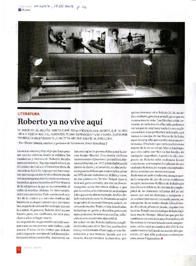 Roberto ya no vive aquí [artículo] Alvaro Bisama