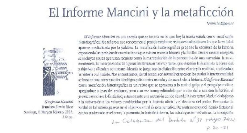 el informe Mancini y la metaficción [artículo] Patricia Espinosa