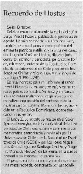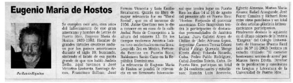 Recuerdo de Hostos [artículo] Angel Pizarro.