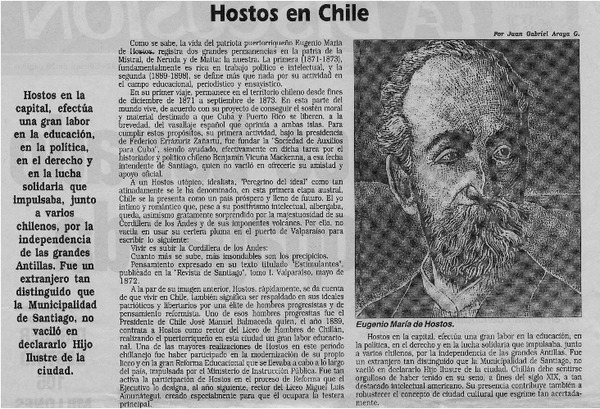 Hostos en Chile [artículo] Juan Gabriel Araya G.
