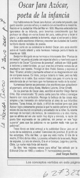 Oscar Jara Azócar, poeta de la infancia [artículo] José Vargas Badilla