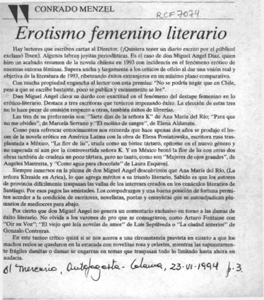 Erotismo femenino literario [artículo] Conrado Menzel.