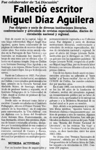 Falleció escritor Miguel Díaz Aguilera. [artículo]
