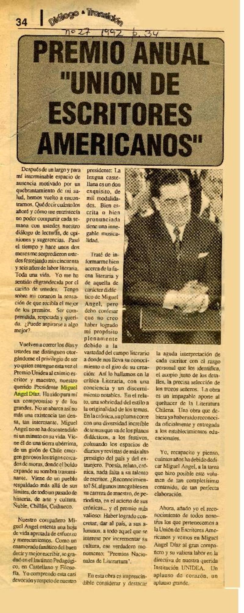 Premio anual "Unión de Escritores Americanos" [artículo].