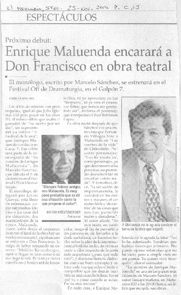 Enrique Maluenda encarará a Don Francisco en obra teatral [artículo] Verónica Marinao