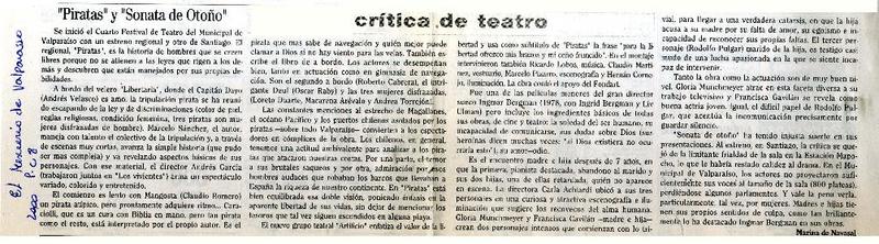 "Piratas" y "Sonata de otoño" [artículo] Marina de Navasal.