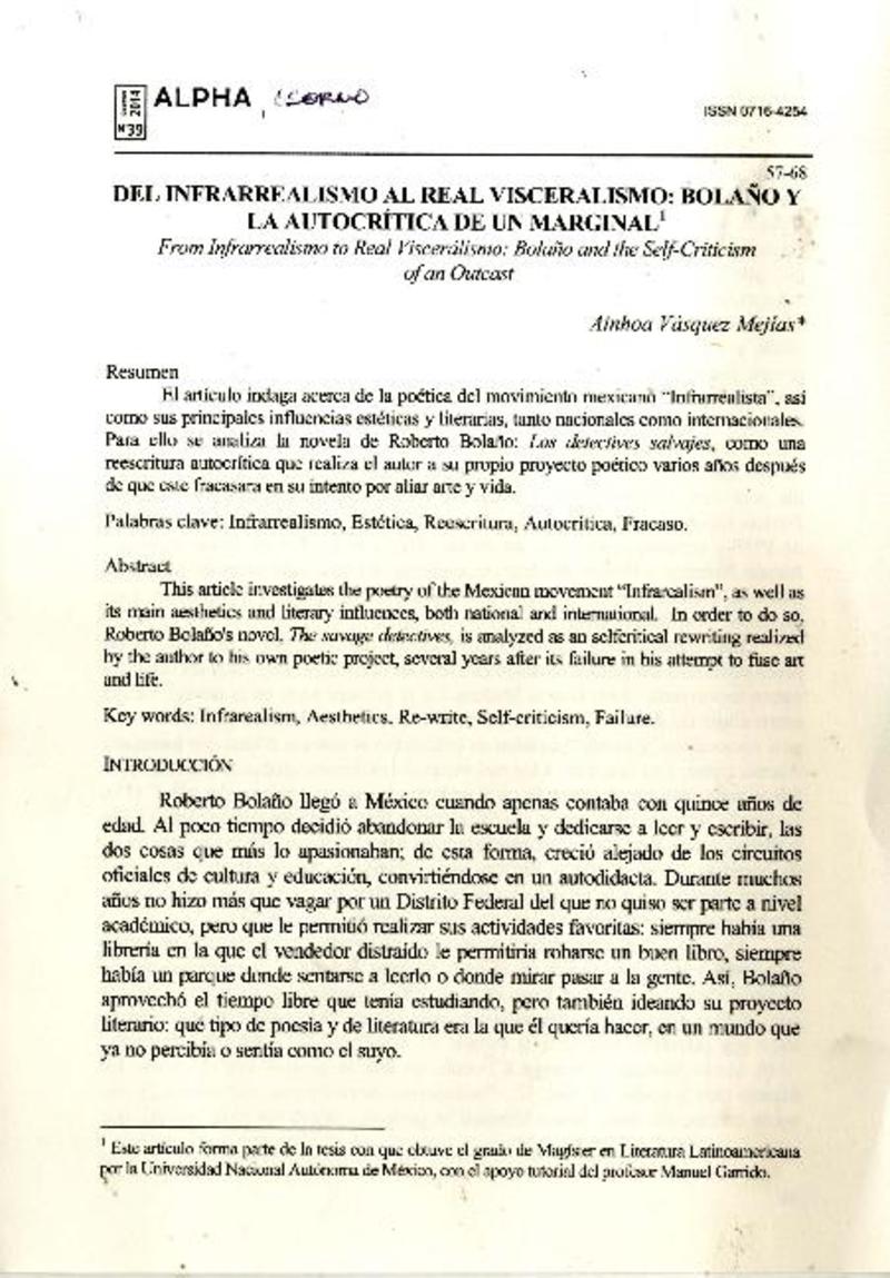 Del infrarrealismo al real visceralismo: Bolaño y la autocrítica de un marginal [artículo] Ainhoa Vásquez Mejías