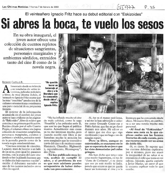 Si abres la boca, te vuelo los sesos : [entrevista y comentario] [artículo] Rodrigo Castillo R.
