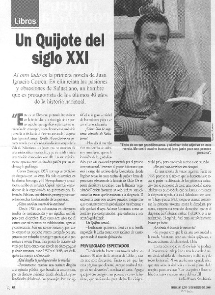 Un Quijote del siglo XXI. (entrevistas) [artículo] Delia Pizarro San Martín
