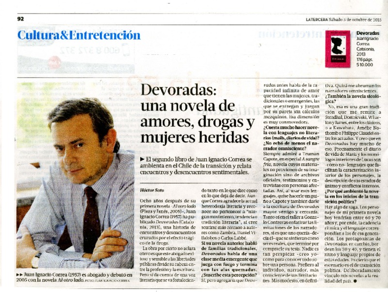 Confiesa Juan Ignacio Correa el escritor es un hombre que intenta explorar la sicología humana [artículo] : Beatriz Aliste T.