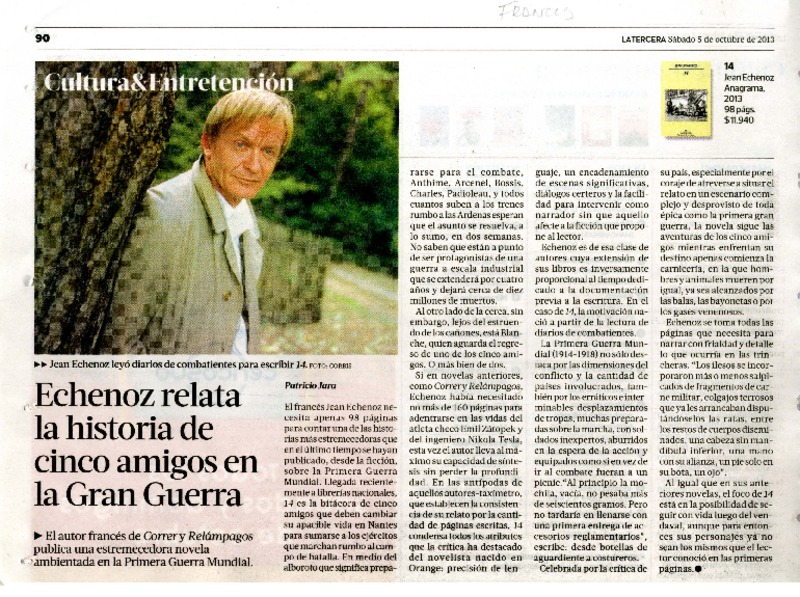 Echenoz relata la historia de cinco amigos en la Gran Guerra [artículo] Patricio Jara