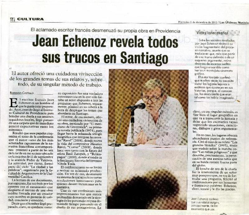 Jean Echenoz revela todos sus trucos en Santiago [artículo]Rodrigo Castillo