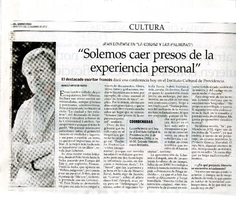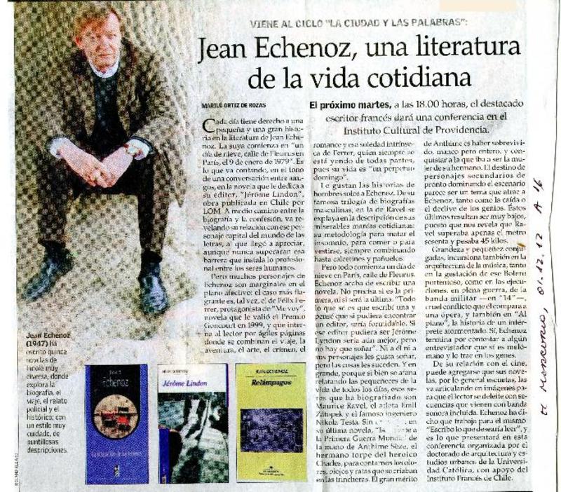 Jean Echenoz, una literatura de la vida cotidiana [artículo]Marilú Ortiz de Rozas