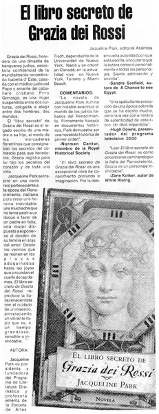 Libro secreto de Grazia dei Rossi - Park, Jaqueline - Autoras canadienses