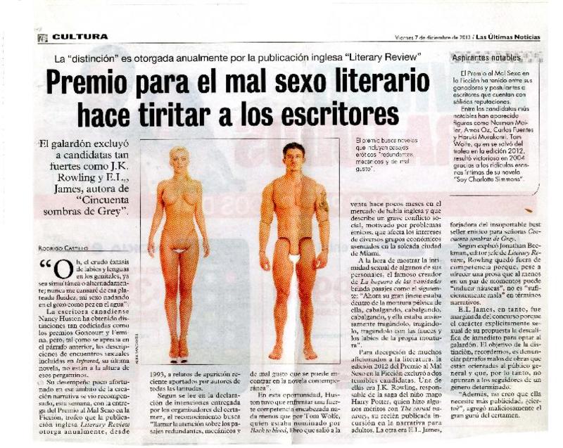 Premio para el mal sexo literario hace tiritar a los escritores [artículo]Rodrigo Castillo
