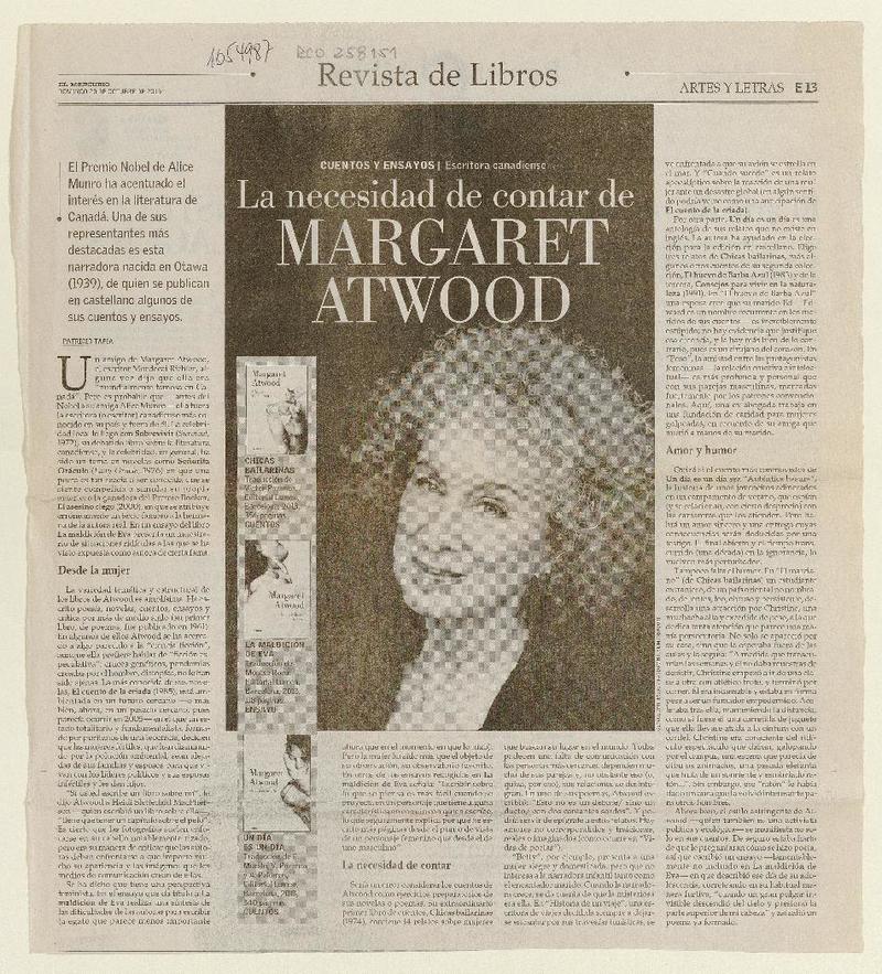 La necesidad de contar de Margaret Atwood [artículo] Patricio Tapia