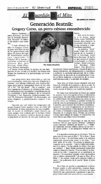 Generación beatnik: Gregory Corso, un perro rabioso ensombrecido [artículo] Yanko González.