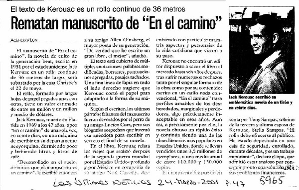 Rematan original de obra maestra de Jac Kerouac. [artículo]