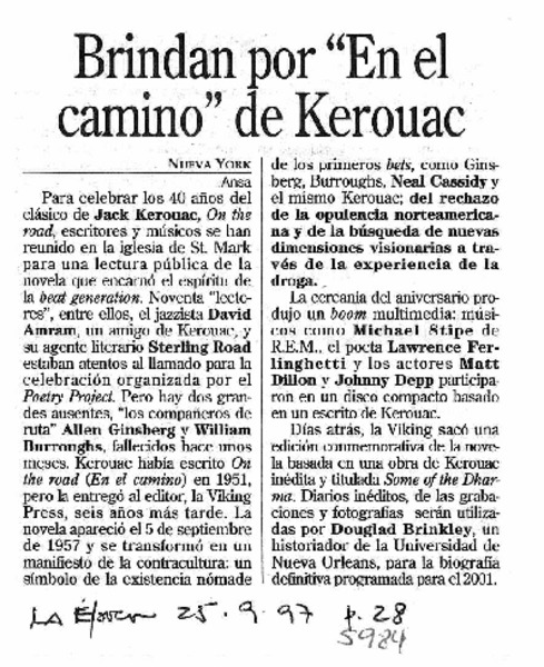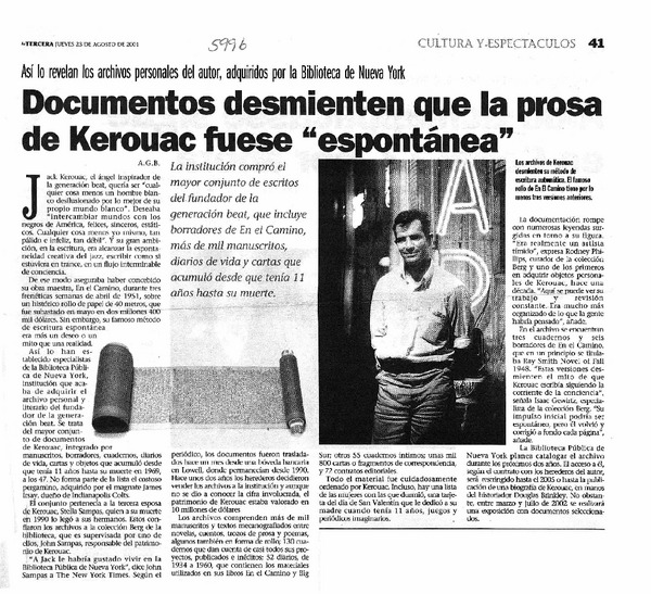 Documentos desmienten que la prosa de Kerouac fuese "espontánea" [artículo] A. G. B.
