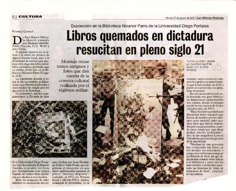 Libros quemados en dictadura resucitan en pleno siglo 21 [artículo]