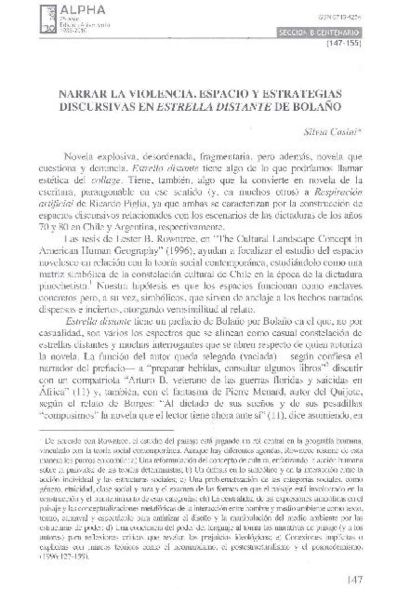 Narrar la violencia, espacio y estrategias discursivas en Estrella distante de Bolaño [artículo] Silvia Casini.