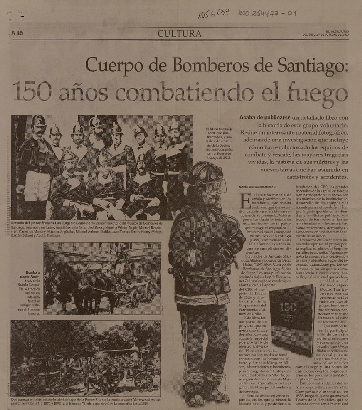 Con candente libro, Bomberos de Santiago celebra sus 150 años [artículo] Rodrigo Castillo