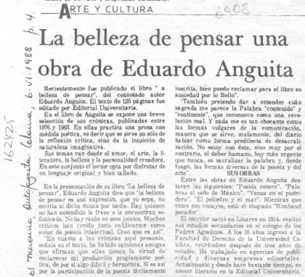 La belleza de pensar - Anguita, Eduardo - Autores chilenos
