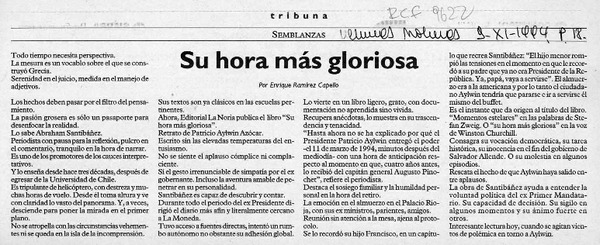Su hora más gloriosa [artículo] Enrique Ramírez Capello.