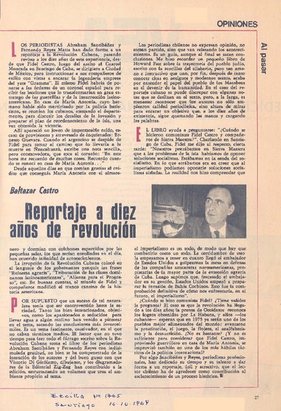 Reportaje a diez años de revolución [artículo] Baltazar Castro.