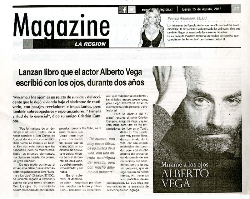Lanzan libro que el actor Alberto Vega escribió con los ojos, durante dos años. [artículo]