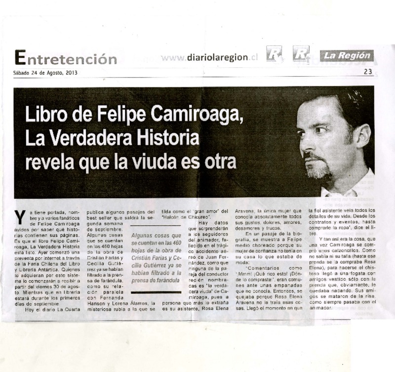 Libro de Felipe Camiroaga, la verdadera historia revela que la viuda es otra [artículo]
